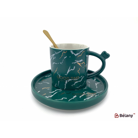 Керамическая чашка с блюдцем "Marmour" изумруд