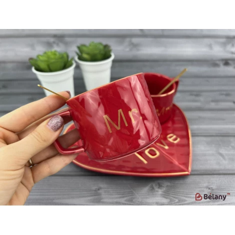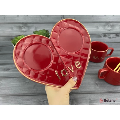 Ceașcă Și Farfurie Din Ceramică „One Whole” Roșu