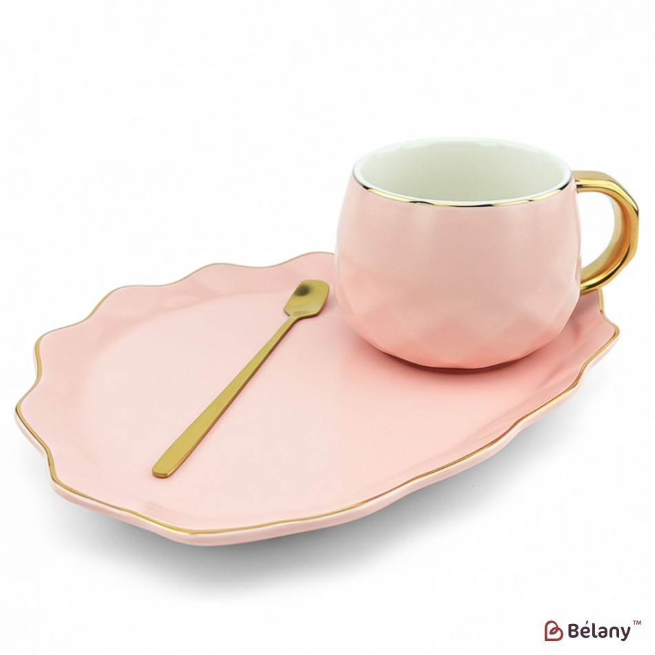 Cana Si Farfuria Din Ceramica "oyster" Roz