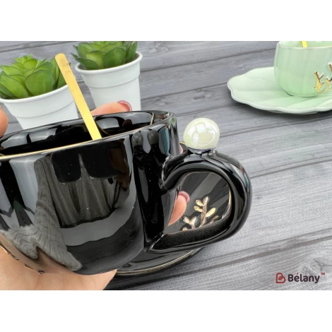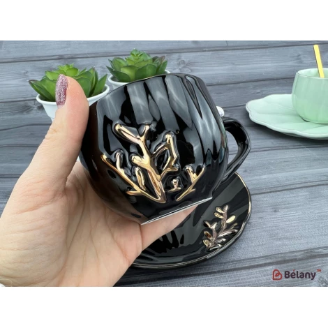 Ceașcă Și Farfurie Din Ceramică „Reef” Neagră