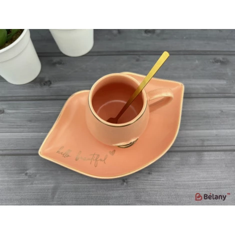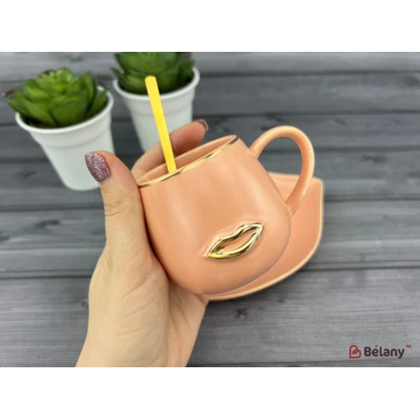 Cana Si Farfurie Din Ceramica "sweet Lips" Roz