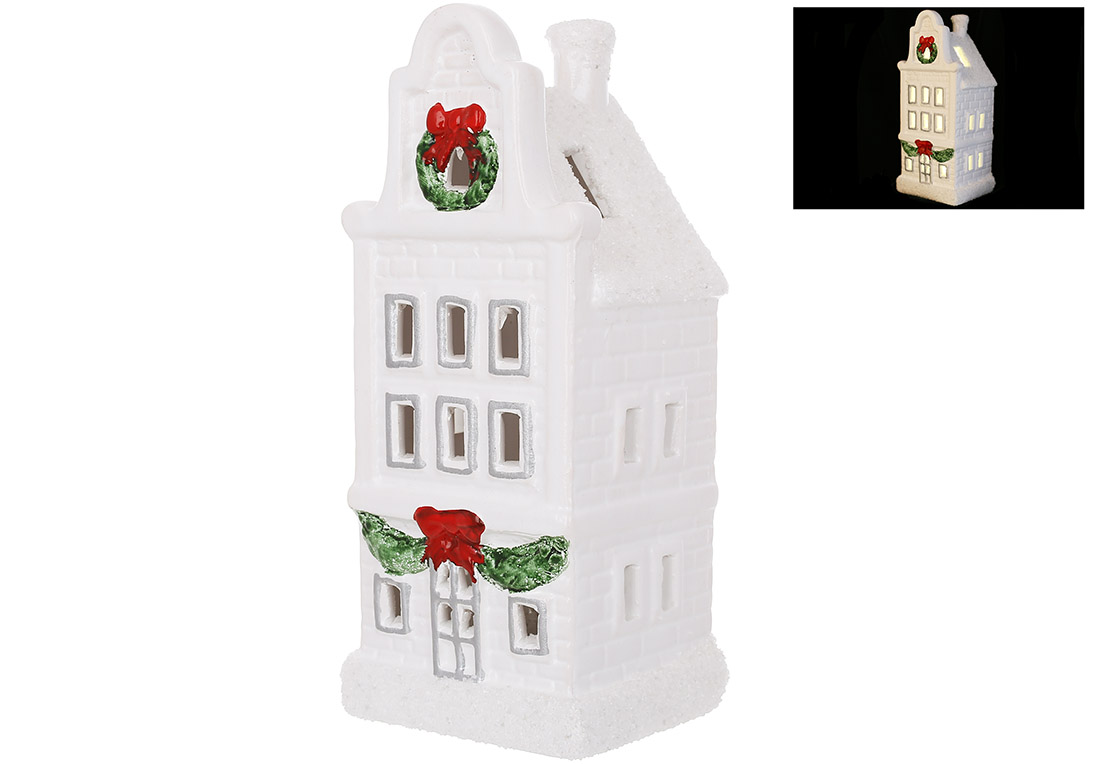 Керамічний Дім з LED підсвічуванням і білою присипкою, 7.5*6.7*18см, колір - білий