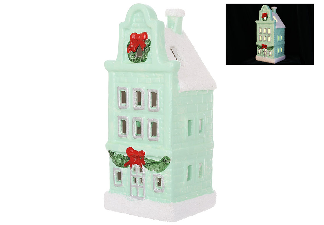 Керамічний Дім з LED підсвічуванням і білою присипкою, 7.5*6.7*18см, колір - світло зелений