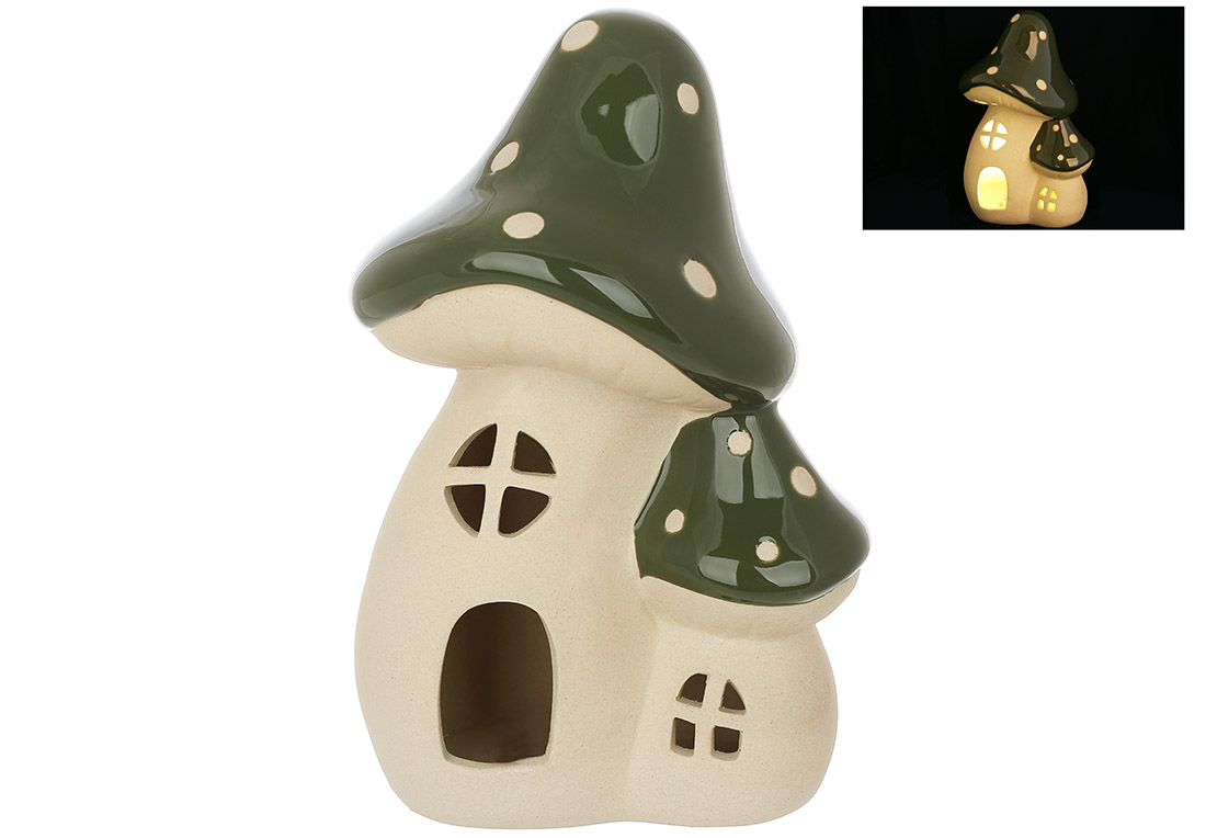 Керамічний будиночок Гриб з LED підсвічуванням, 12.6*10*19.5см, колір - бежевий із зеленим