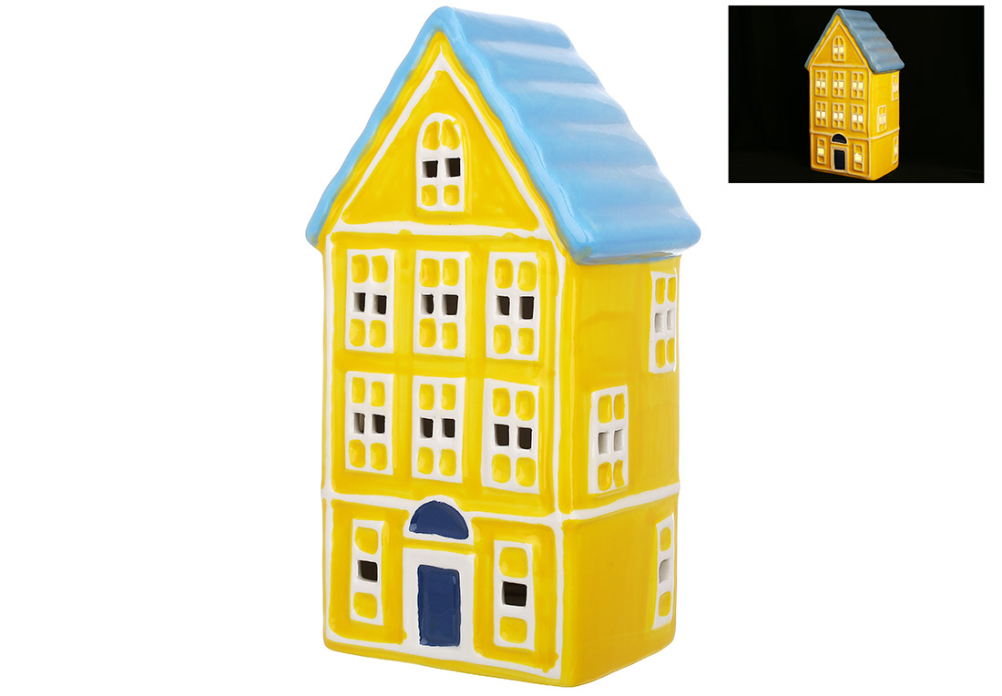 Керамічний будиночок з LED підсвічуванням, 10.5*7*19.3см, колір - жовтий з блакитним