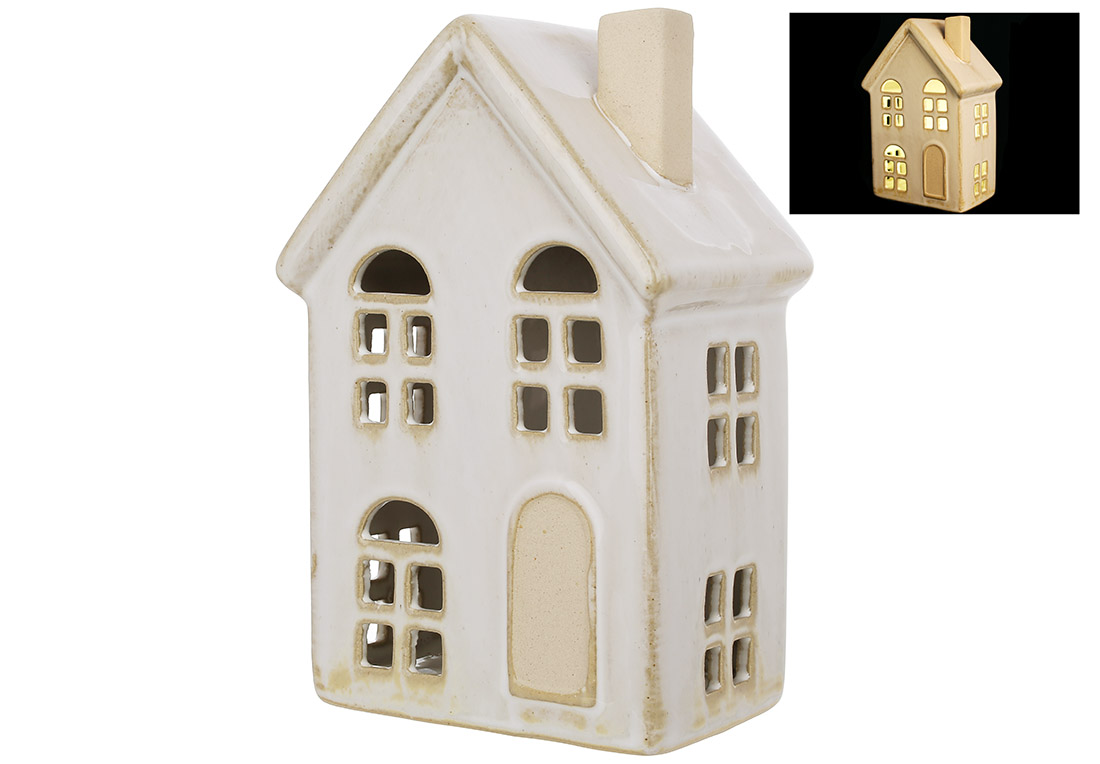 Керамічний будиночок з LED підсвічуванням, 10*7.3*15.5см, колір - бежевий