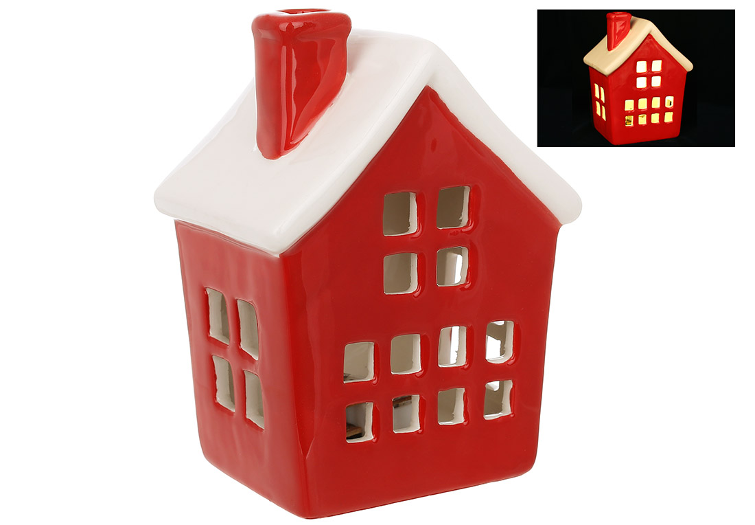 Керамічний будиночок з LED підсвічуванням, 7*6*10см, колір - червоний з білим