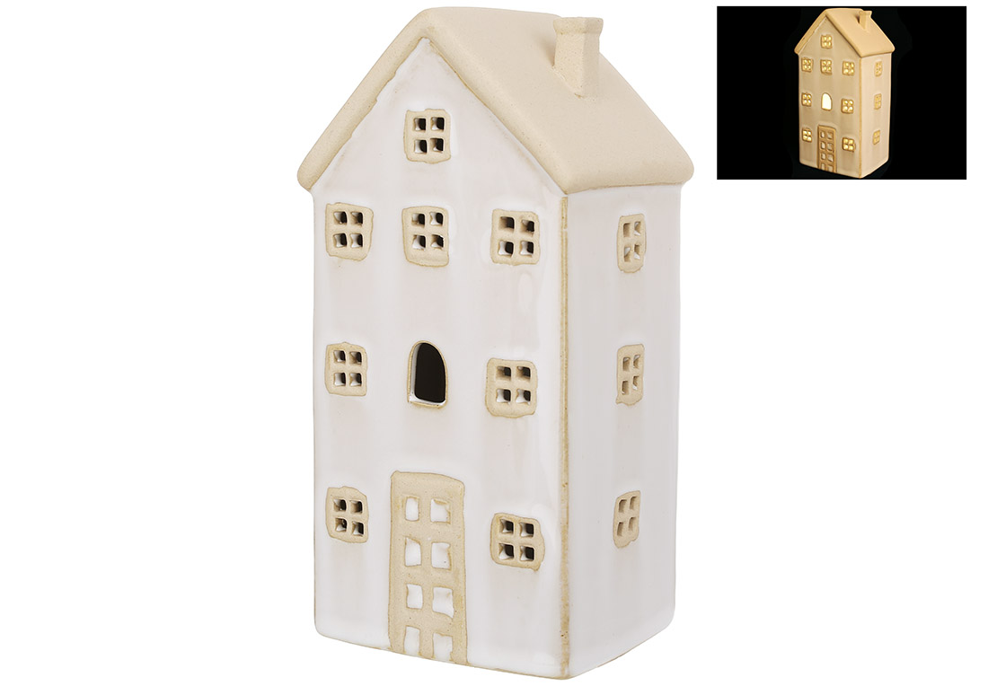 Керамічний будиночок з LED підсвічуванням, 8.2*7*16.5см, колір - бежевий