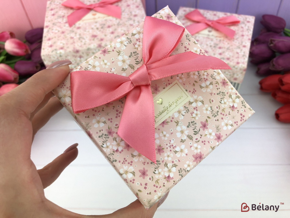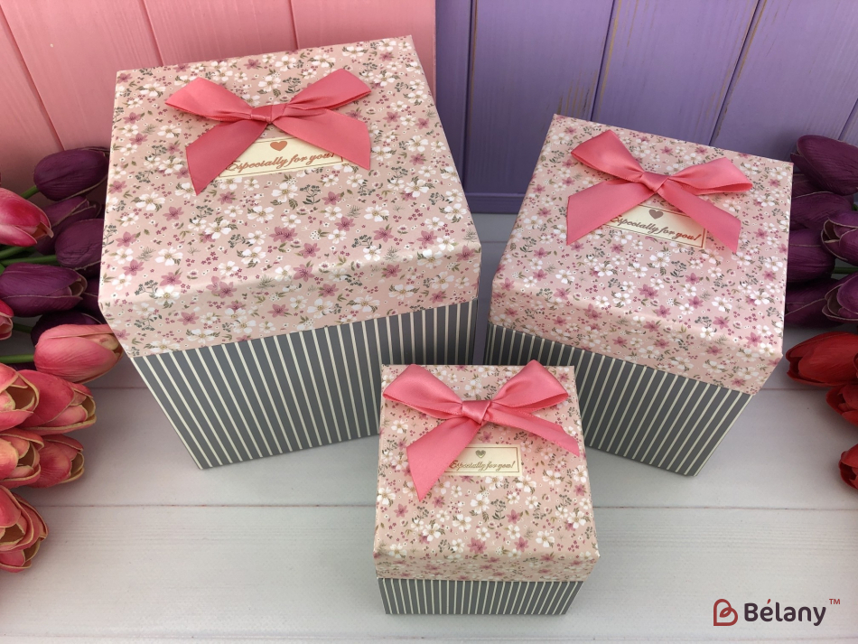 Квадратная подарочная коробка "Flowery" светло-розовая