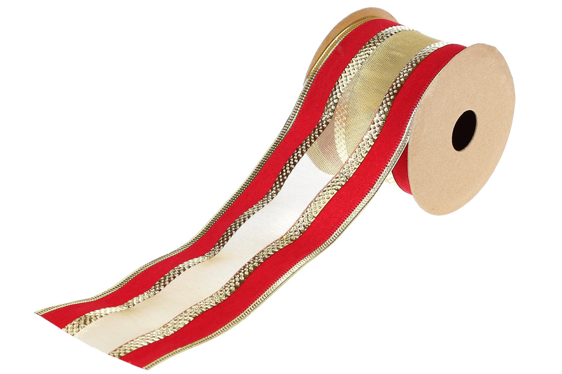 Стрічка декоративна 6.3*270см, колір - червоний оксамит із вставкою сітка-шампань