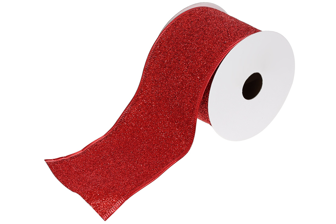 Стрічка декоративна 6.3*270см, колір - червоний гліттер