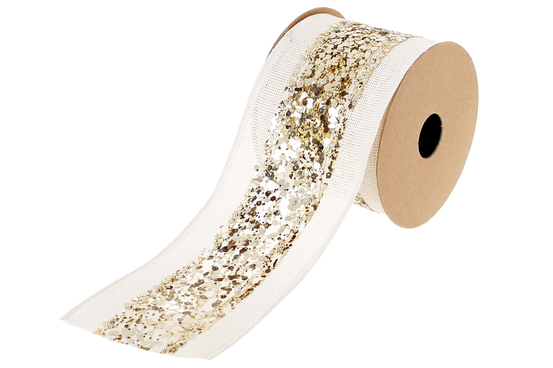 Стрічка декоративна 6,3*270см, колір - льон із золотими паєтками