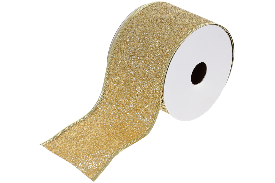 Стрічка декоративна 6.3*270см, колір - золотий гліттер