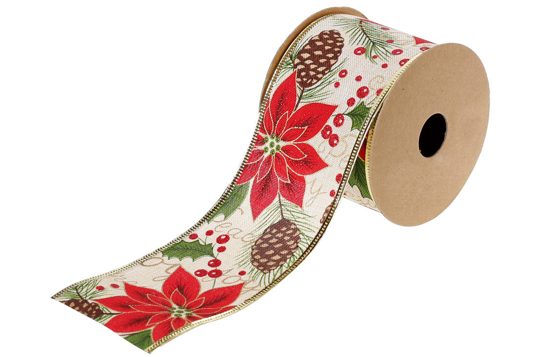 Стрічка декоративна з малюнком Червоні Пуансетії 6.3*270см