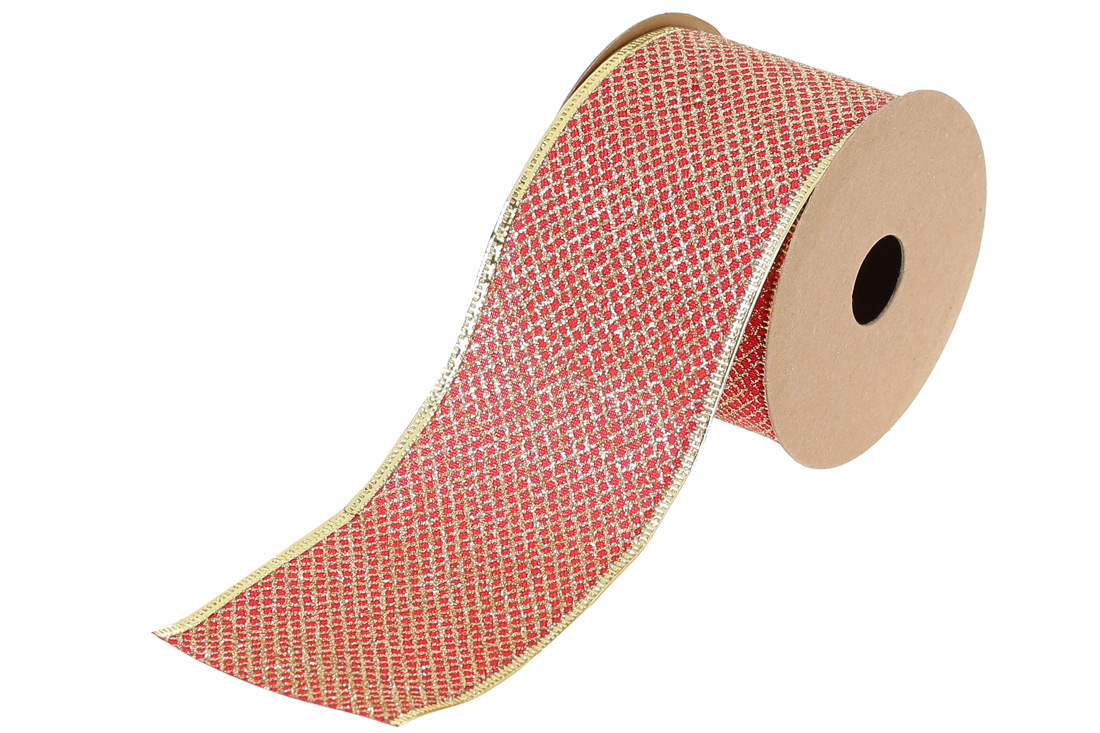 Стрічка декоративна із сітчастим візерунком 6.3*270см, колір - червоний із золотом