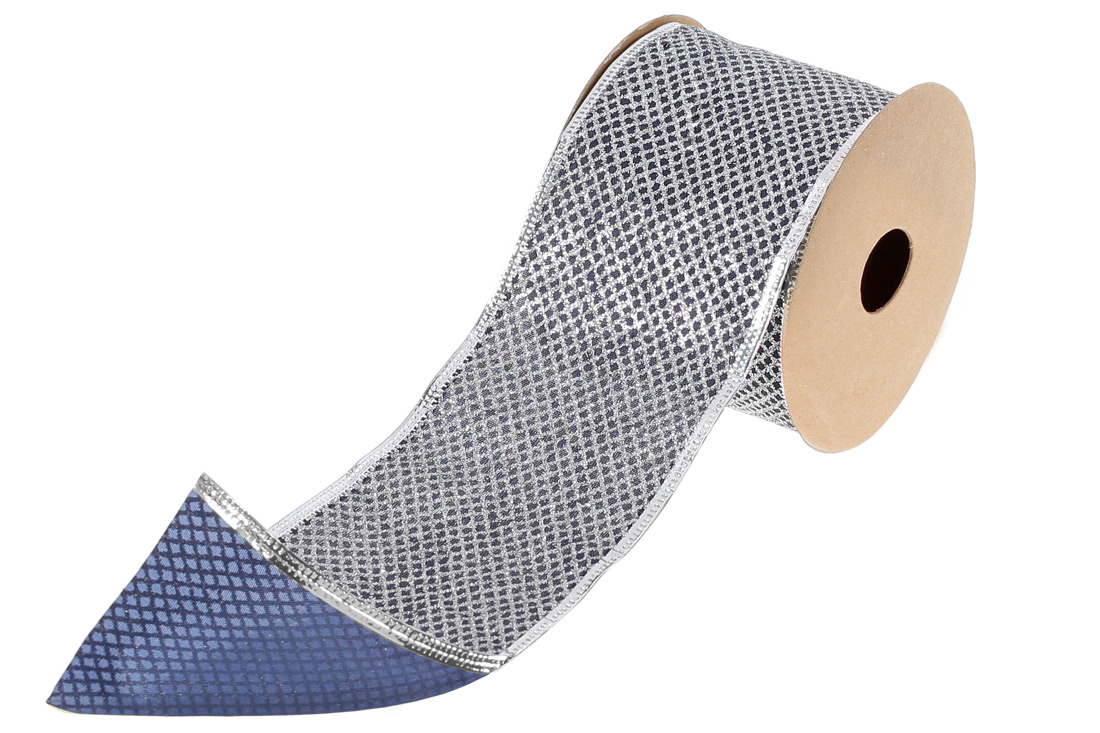 Стрічка декоративна із сітчастим візерунком 6.3*270см, колір - синій зі сріблом