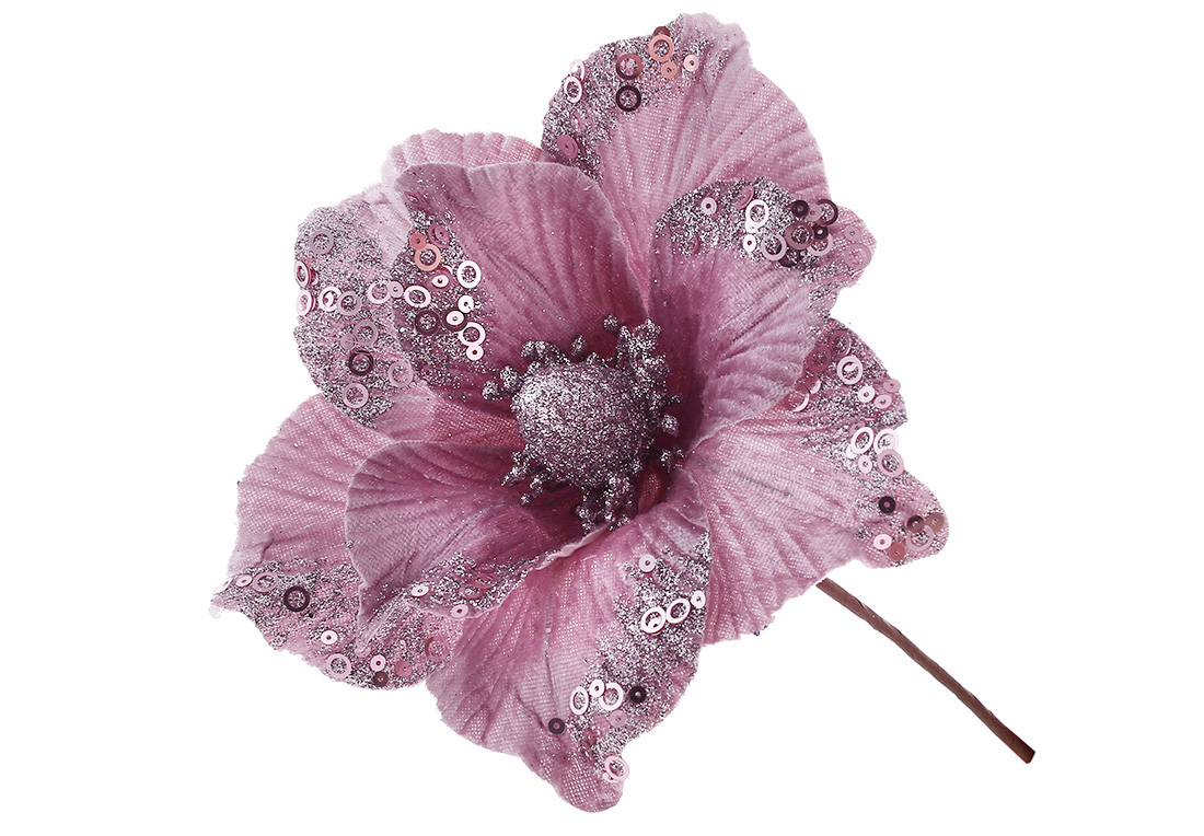 Магнолія оксамитова з паєтками D23см, колір - рожевий