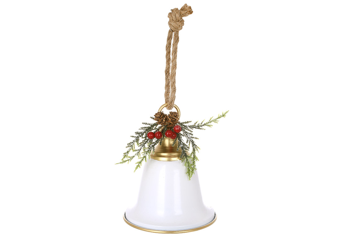 Металева підвіска Christmas bell з декором із хвої D15*18см, колір - білий