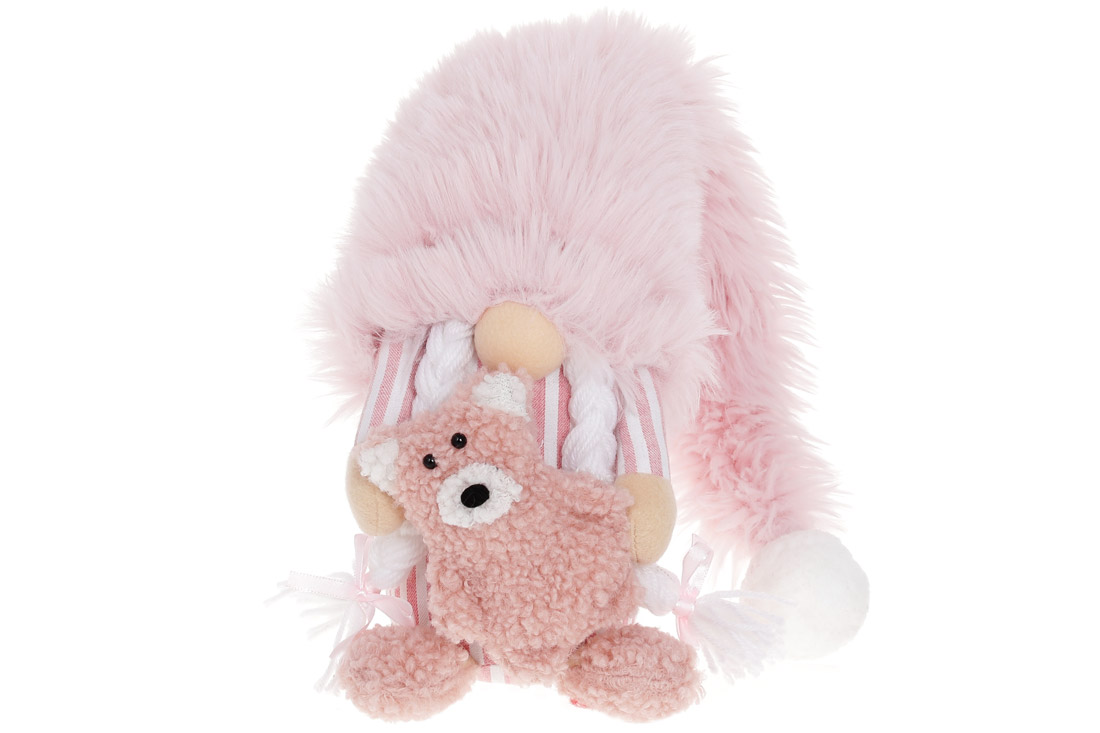 М'яка іграшка Гном з Ведмедиком, 63см, колір - світло-рожевий