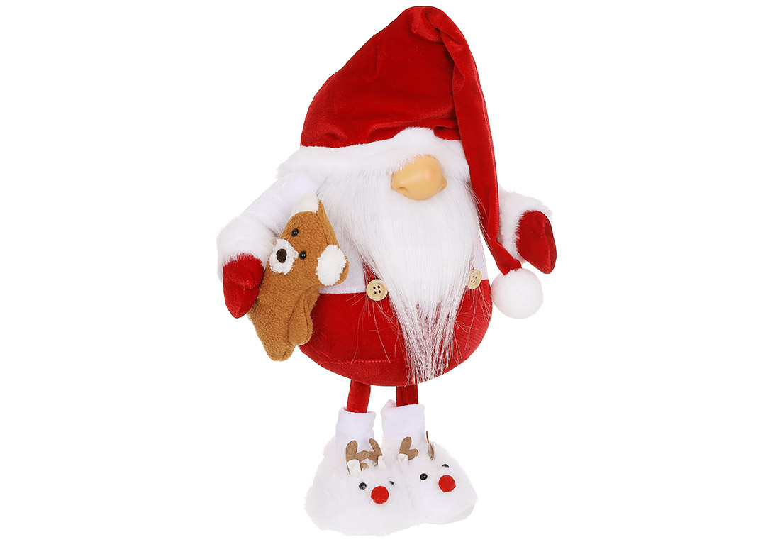 М'яка іграшка Гном в піжамі з ведмедиком, 25*14*68см, колір-червоний з білим