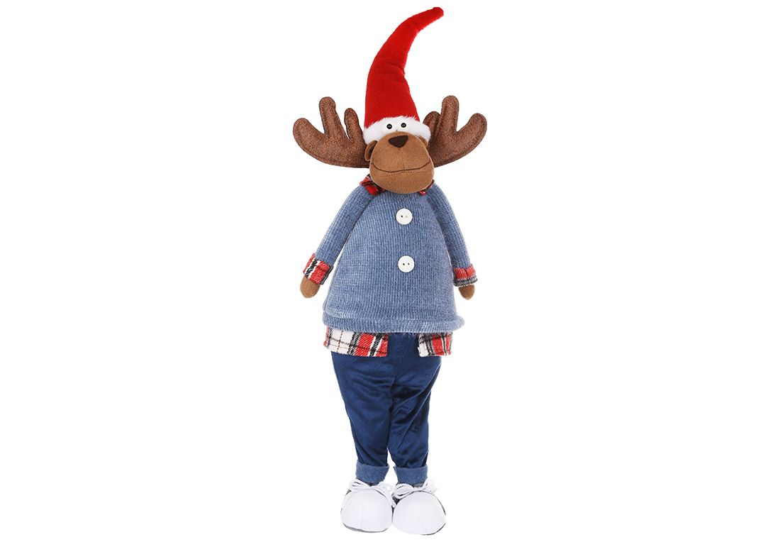 М'яка іграшка Олень 22 * 17 * 65см, колір - синій з червоним
