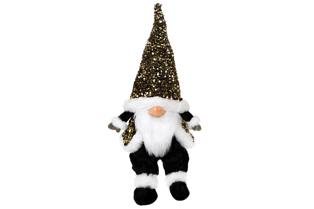 М'яка іграшка Сидячий Гном, 64см, колір - чорно-білий у паєтках