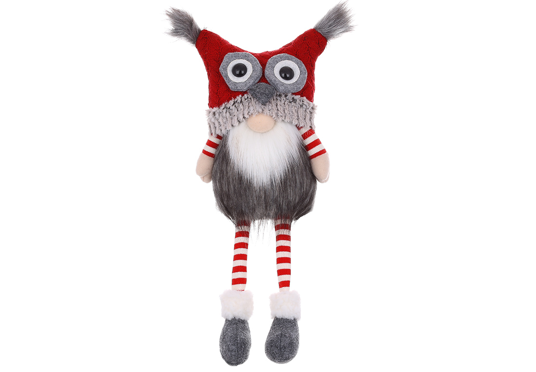 М'яка іграшка Сидячий Гном у шапці сова, колір - червоний з сірим, 19*12*44см