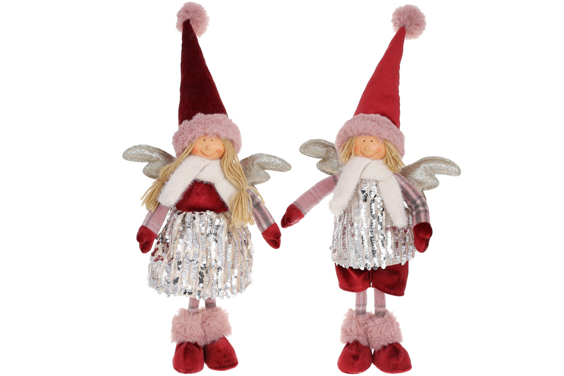 М'яка новорічна іграшка Янгол, 54см, 2 дизайни: Дівчинка та Хлопчик, колір - червоний з рожевим у паєтках