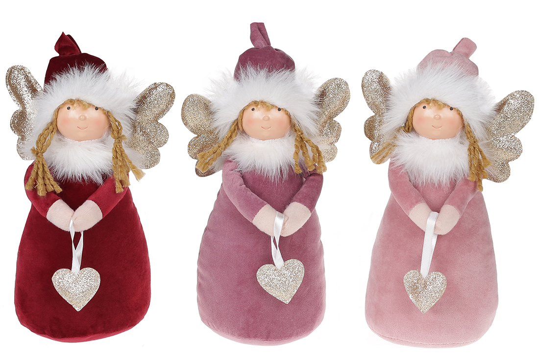 М'яка новорічна іграшка Янголята з сердцями, 26см, 3 дизайни, колір - бордовий, фіолетовий, рожевий