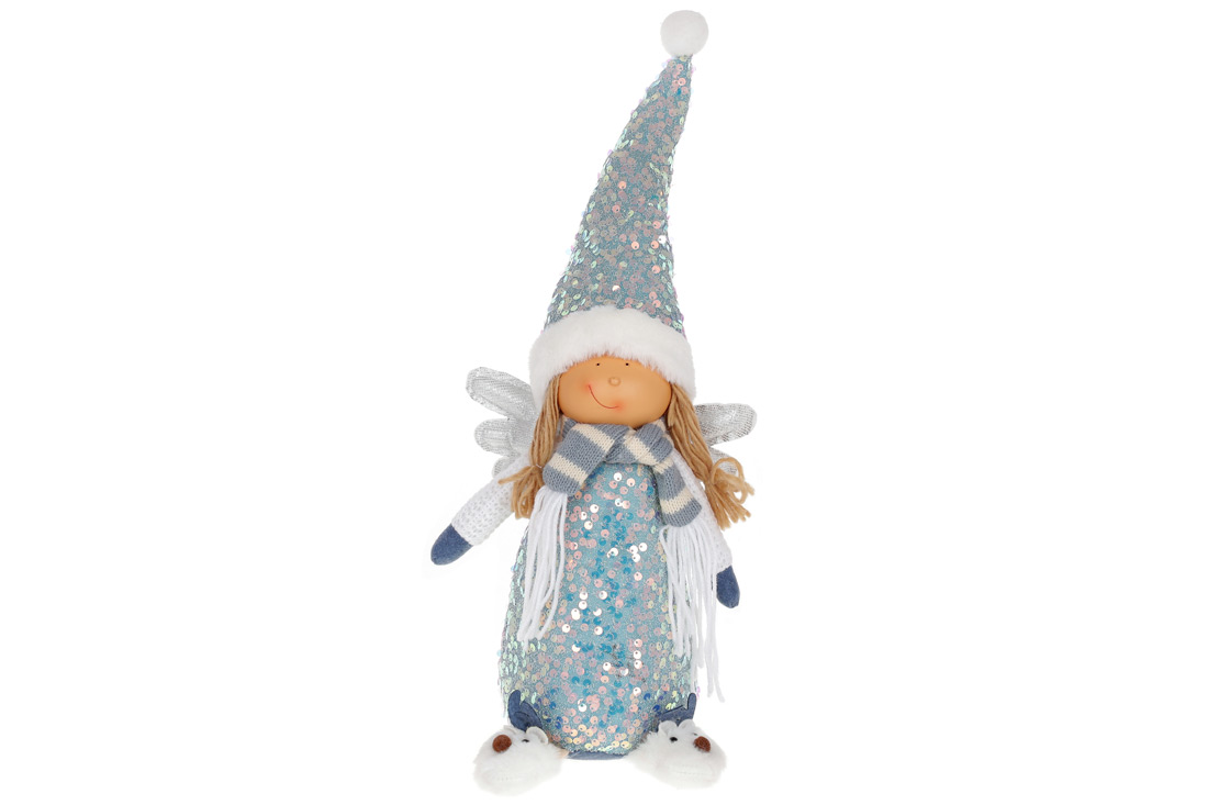М'яка новорічна іграшка Дівчинка, 49см, колір - блакитний з паєтками