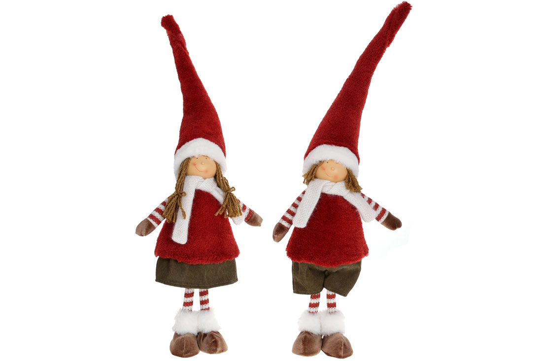 М'яка новорічна іграшка Дівчинка та Хлопчик, 70см, 2 дизайни, колір - червоний з коричневим