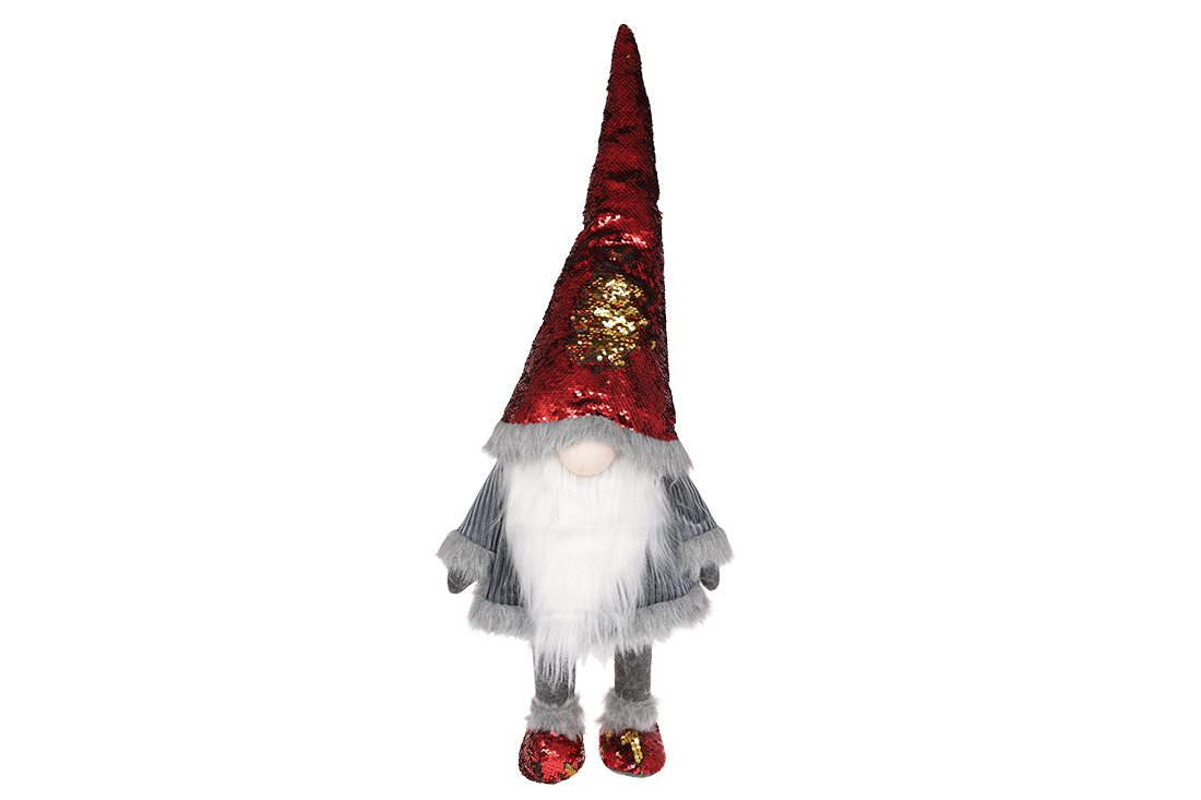 М'яка новорічна іграшка Гном, 81см, колір - сірий з червоним у паєтках