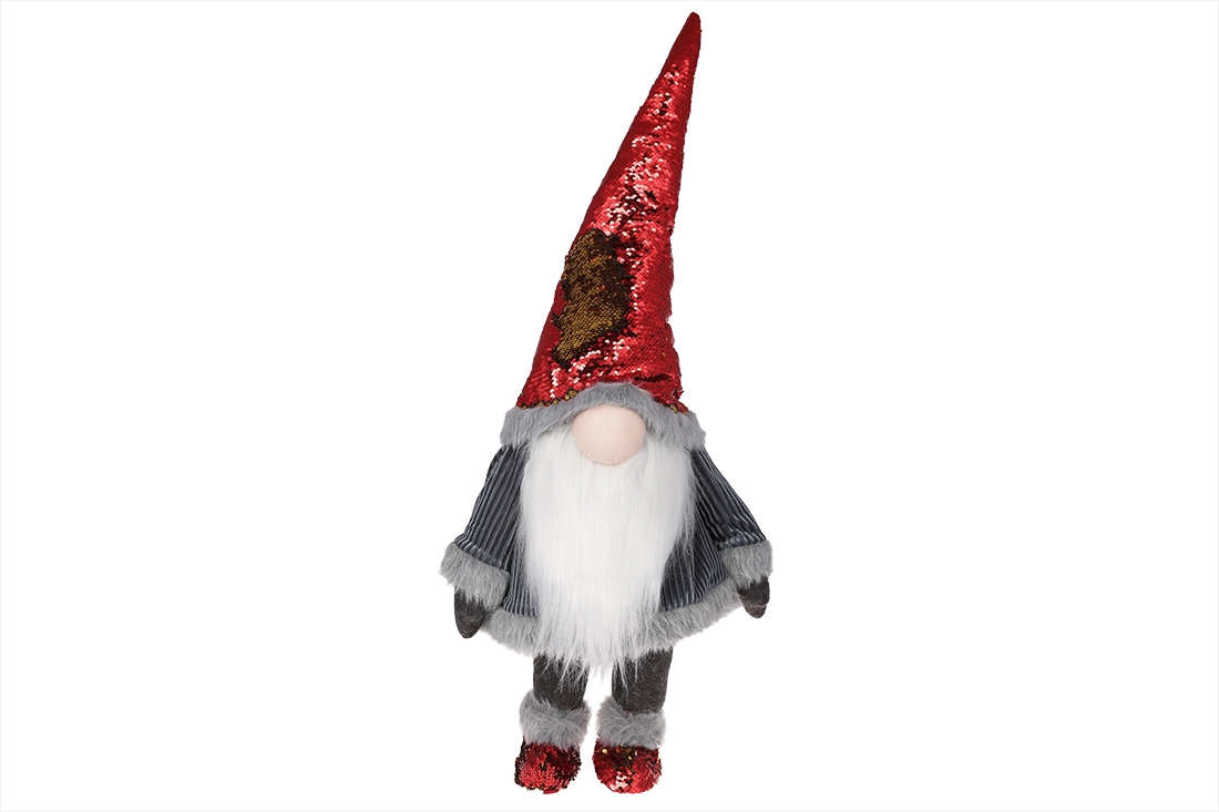 М'яка новорічна іграшка Гном, 90см, колір - сірий з червоним у паєтках
