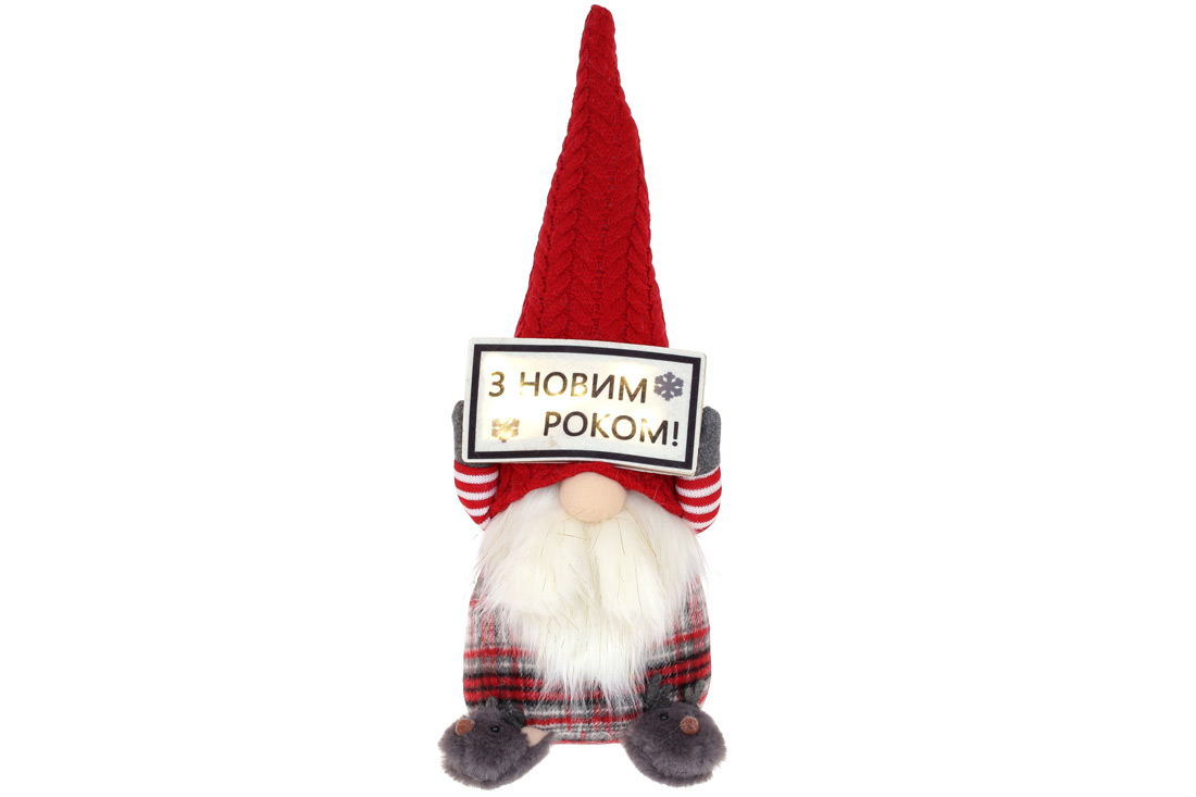 М'яка новорічна іграшка Гном з LED підсвічуванням, 47см, колір - сірий з червоним
