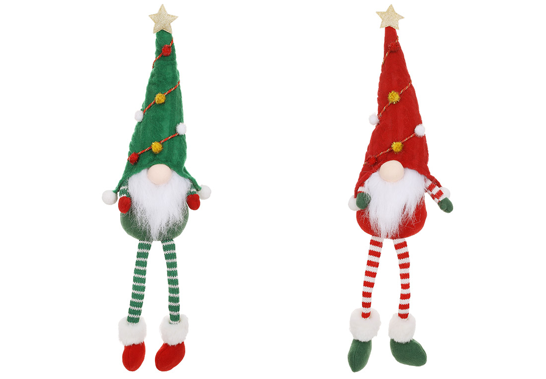 М'яка новорічна іграшка Гном з ніжками, що висять 56см, 2 дизайни, колір - червоний з зеленим