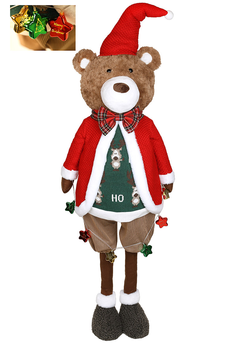 М'яка новорічна іграшка Ведмедик з гірляндою, з LED підсвічуванням, 56*37*178см