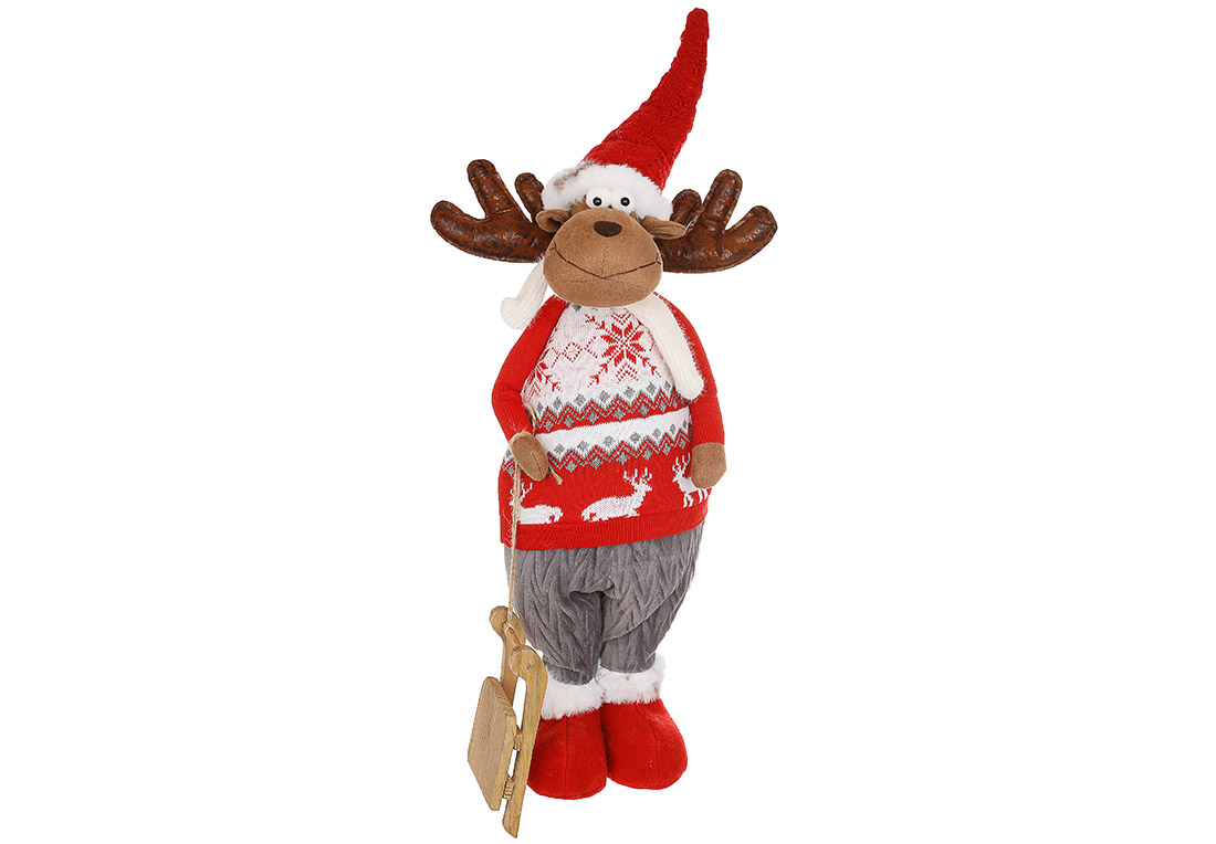 М'яка новорічна іграшка Олень 19*15*58см, колір - червоний із сірим