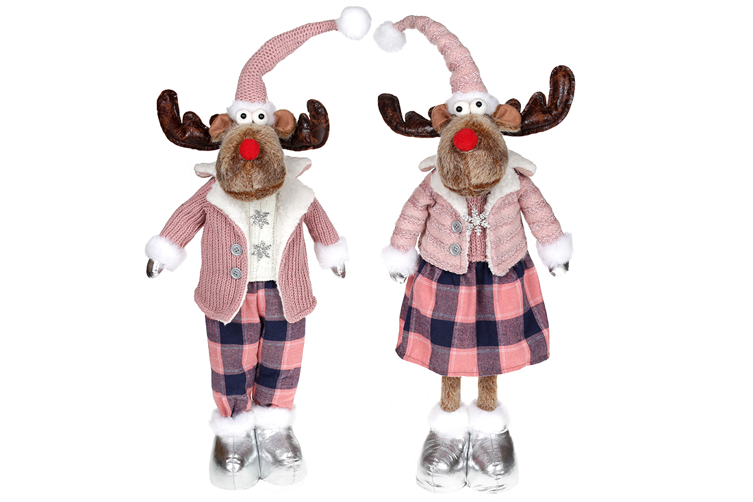 Новорічна м'яка іграшка Олень 78см, 2 дизайни, колір - рожевий з коричневим