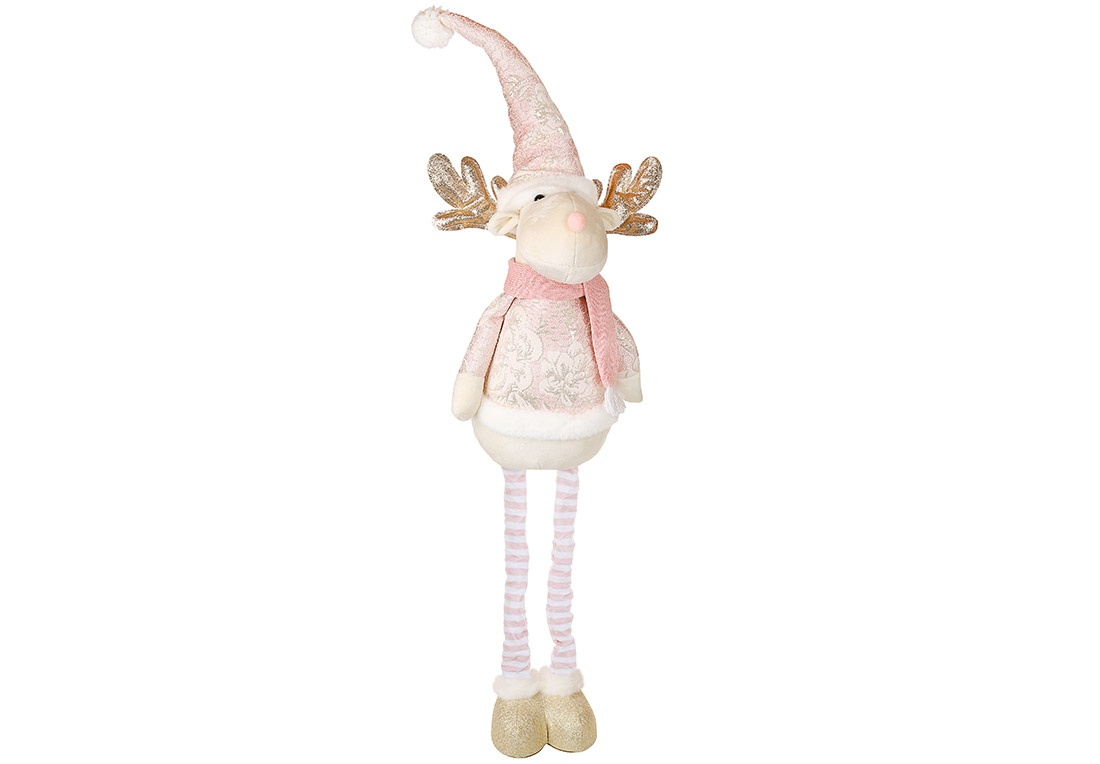 М'яка новорічна іграшка Олень на телескопічних ногах, 85/105см, колір - рожевий із золотом