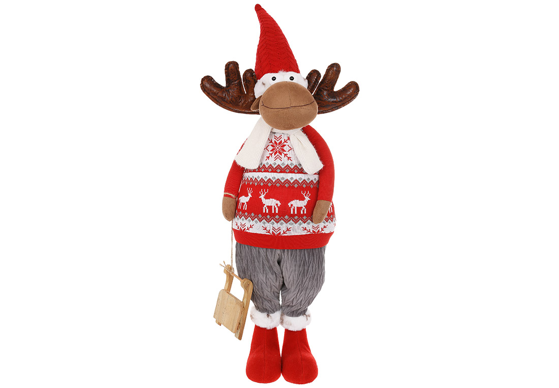 М'яка новорічна іграшка Олень із санками, 25*22*84см, колір - червоний з сірим