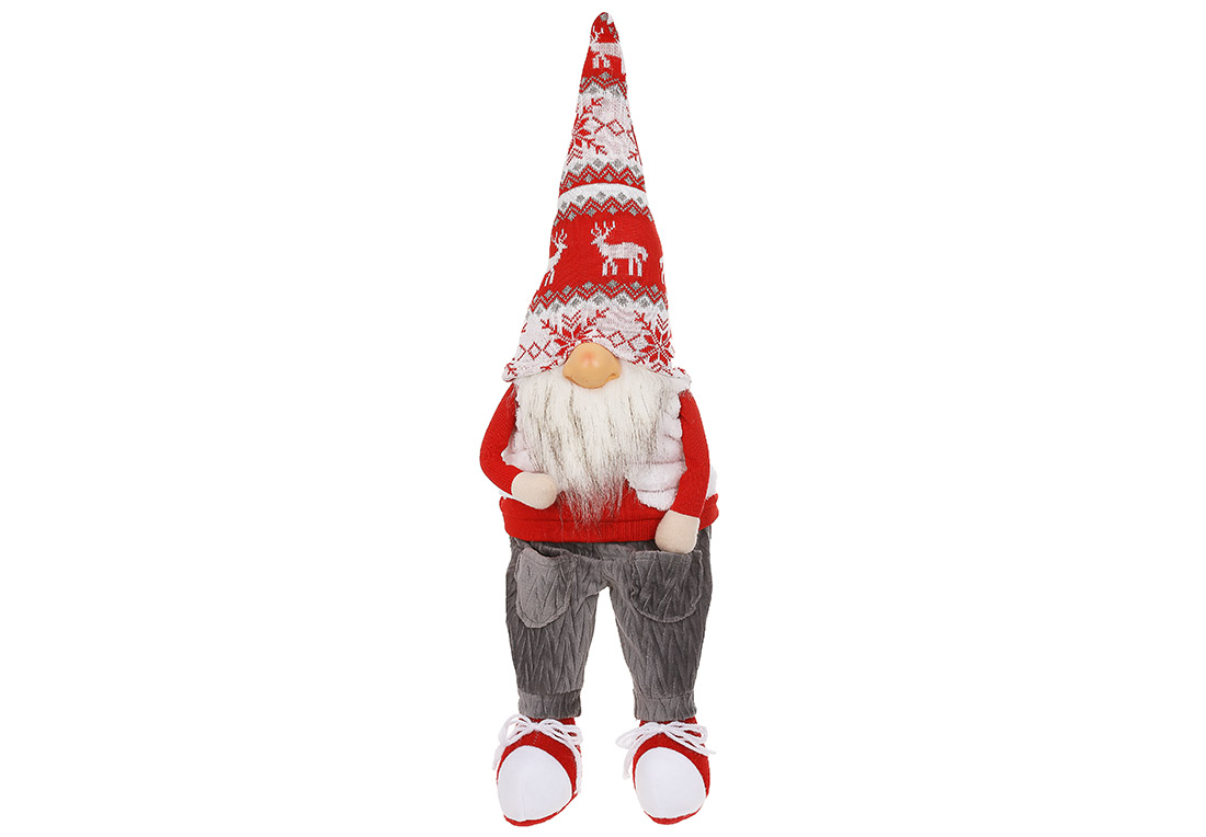 М'яка новорічна іграшка Сидячий Гном, 17*14*58см, колір - червоний із сірим