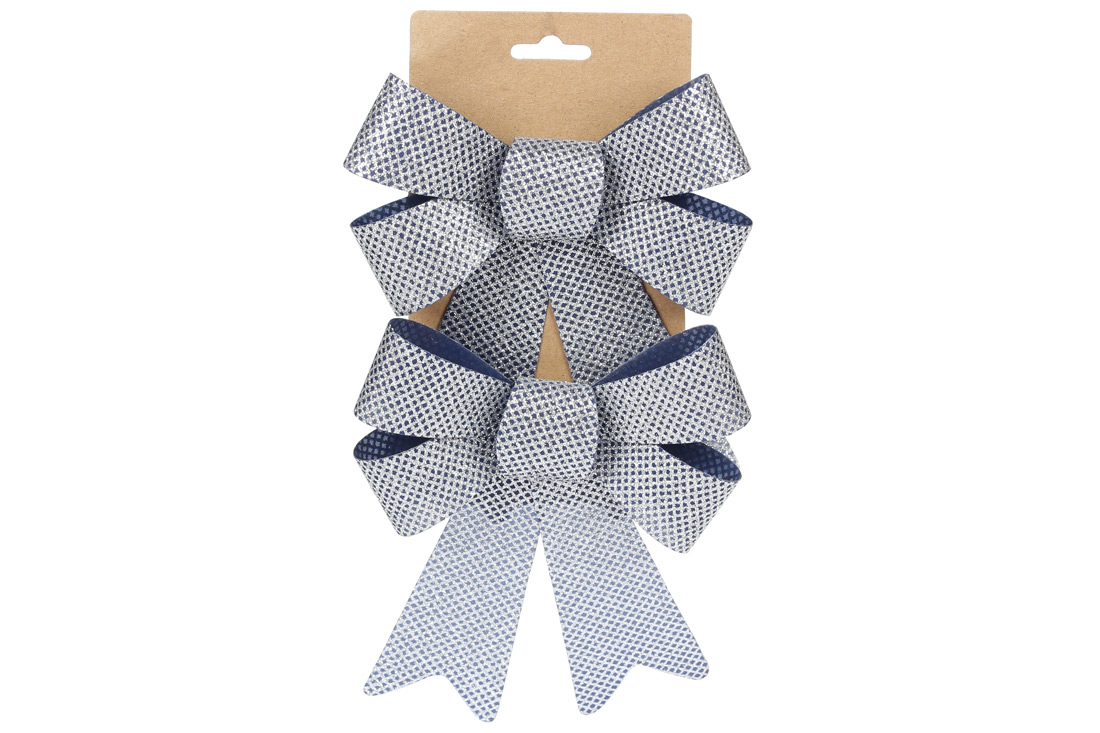 Набір (2 шт) декоративних бантів 14*20см, колір - синій зі сріблом