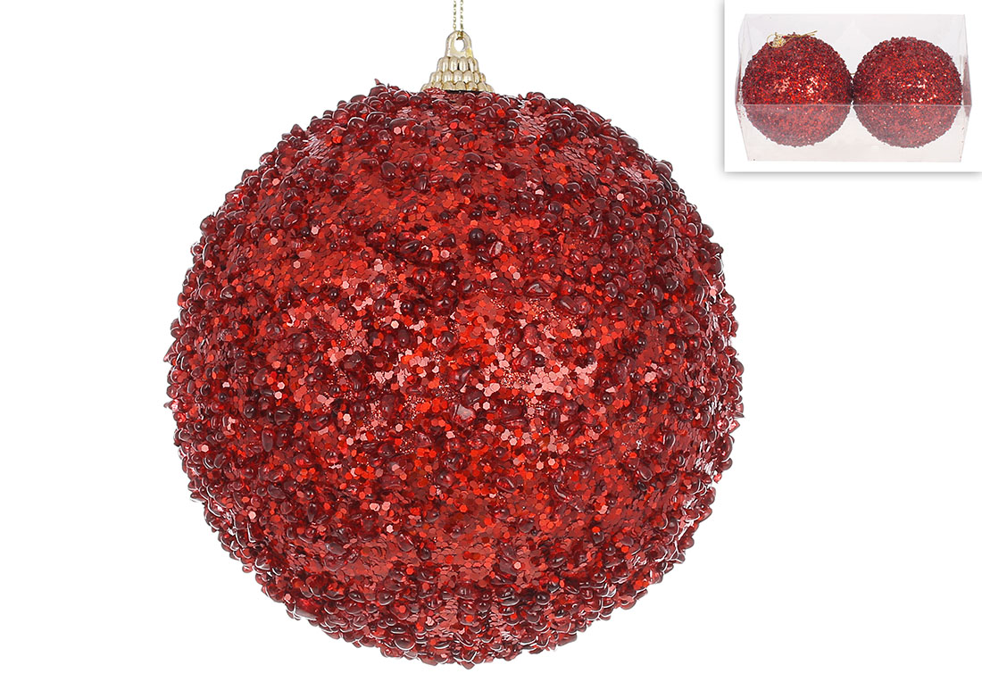 Набір (2шт) ялинкових куль 12см, колір - червоний