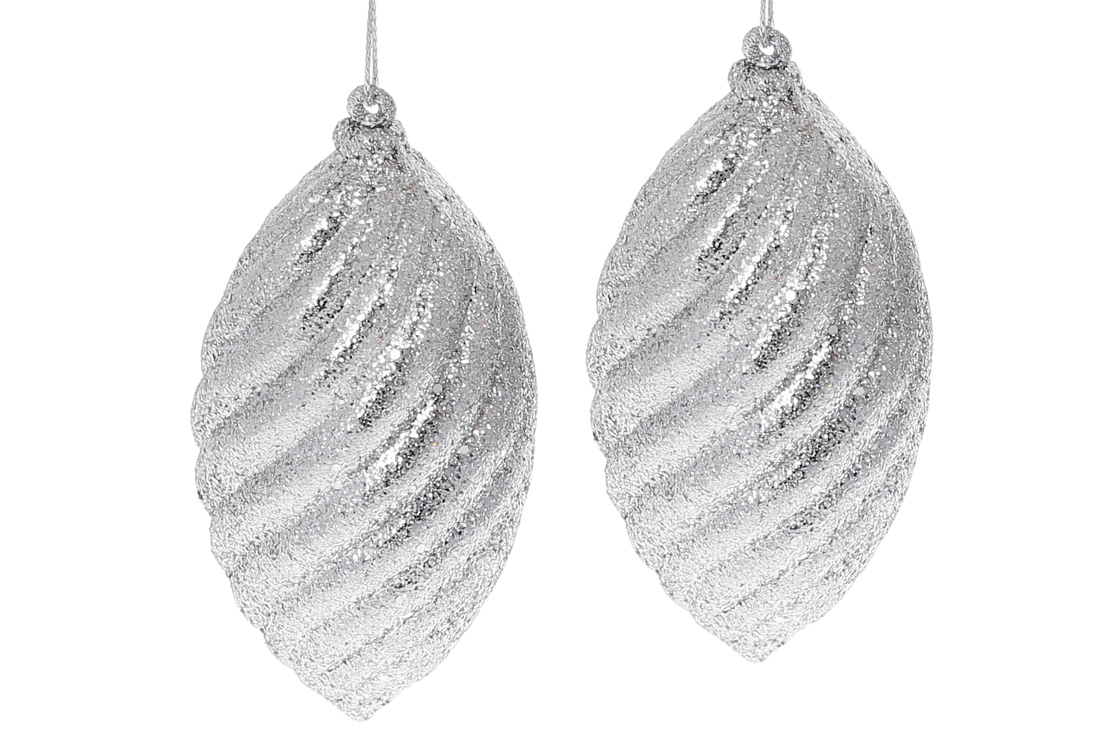 Набір (2шт) ялинкових прикрас 10см, колір - срібний гліттер
