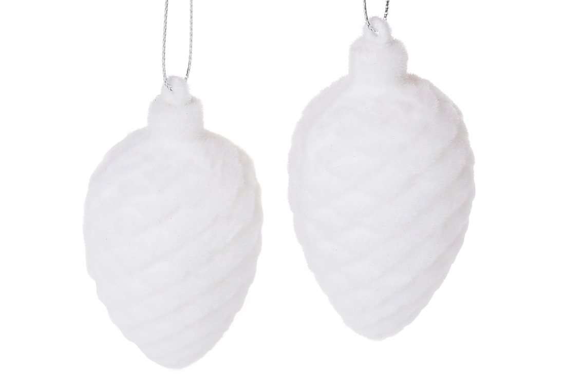Набір (2шт) ялинкових прикрас 7.5см, колір - білий велюр