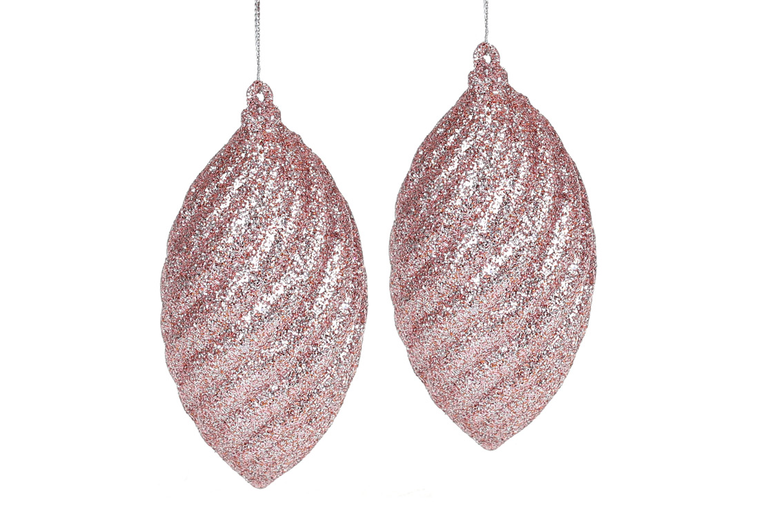 Набір (2шт) ялинкових прикрас, колір - рожевий гліттер