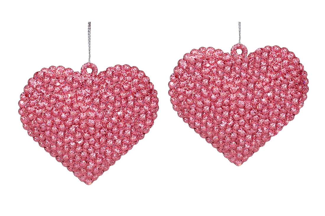 Набір (2шт) ялинкових прикрас Серце 6см, колір - полуничний гліттер