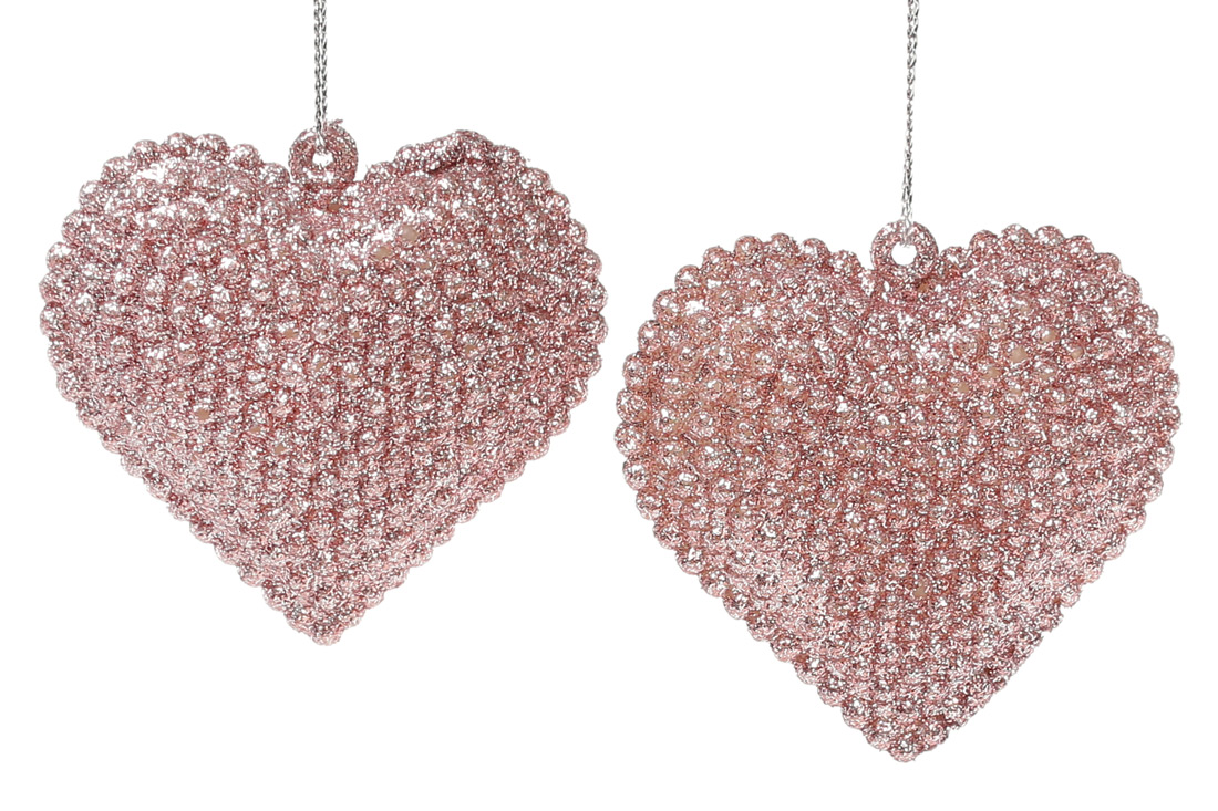 Набір (2шт) ялинкових прикрас Серце 6см, колір - ніжно-рожевий гліттер