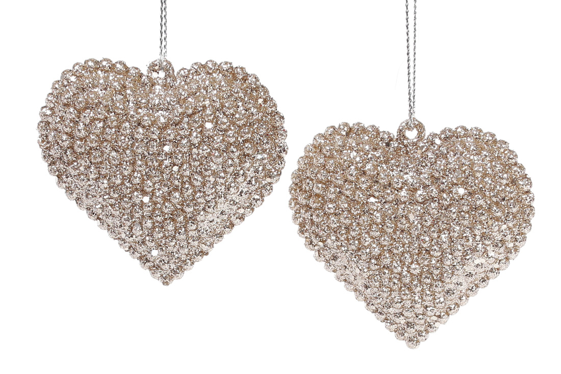 Набір (2шт) ялинкових прикрас Серце 6см, колір - шампань гліттер