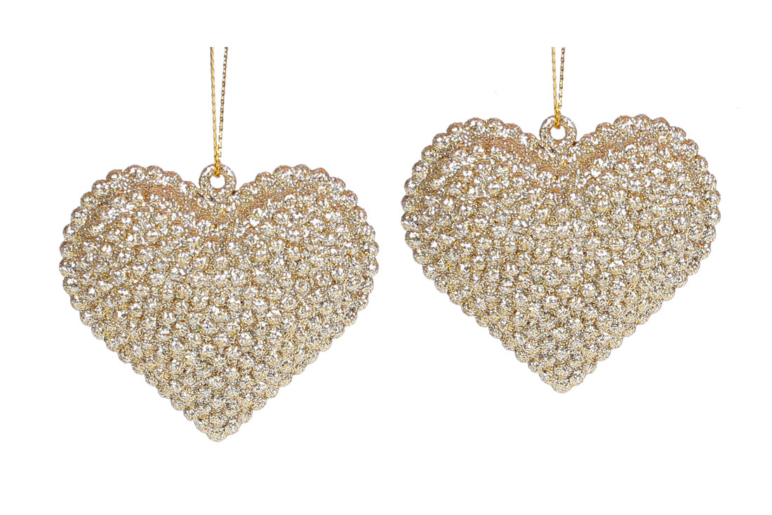 Набір (2шт) ялинкових прикрас Серце 6см, колір - світло-золотий гліттер